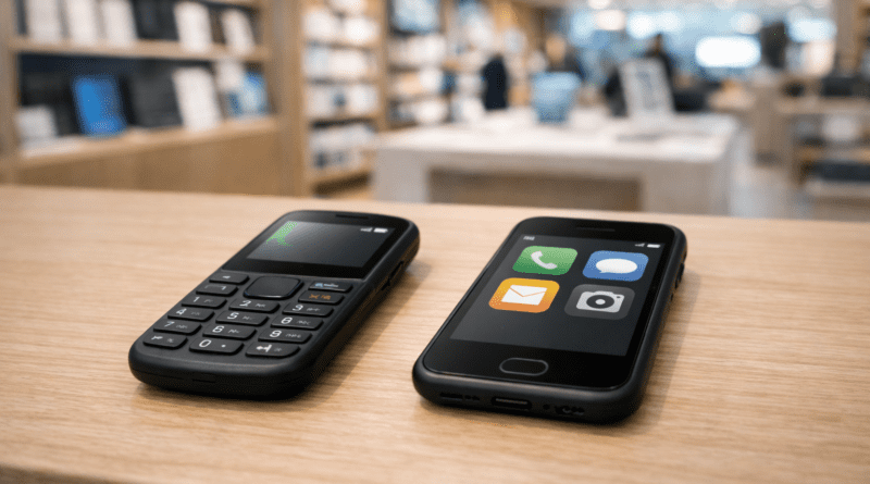 - “Dumbphone” or basic phone: A phone centered on calling and texting with limited internet features